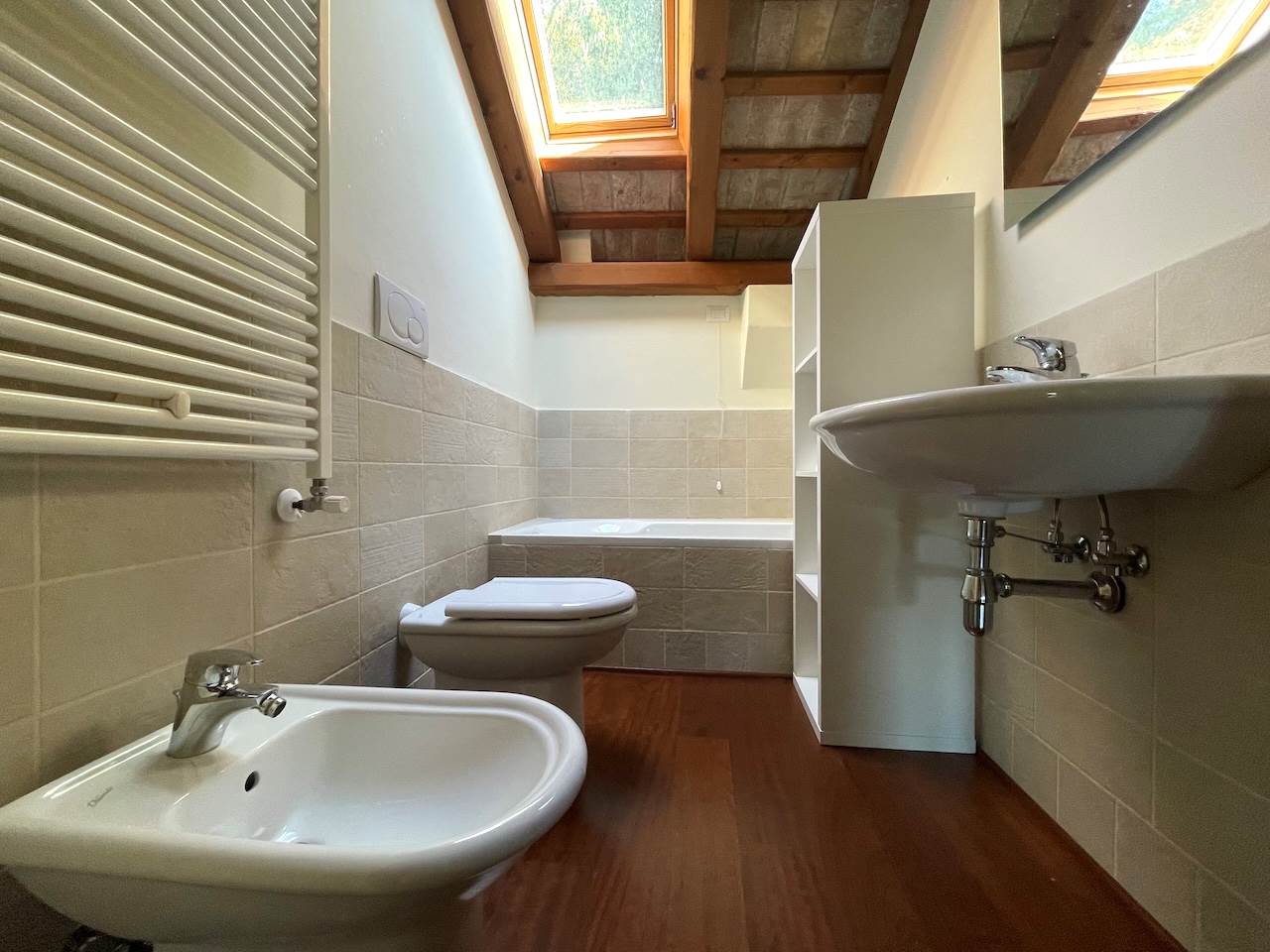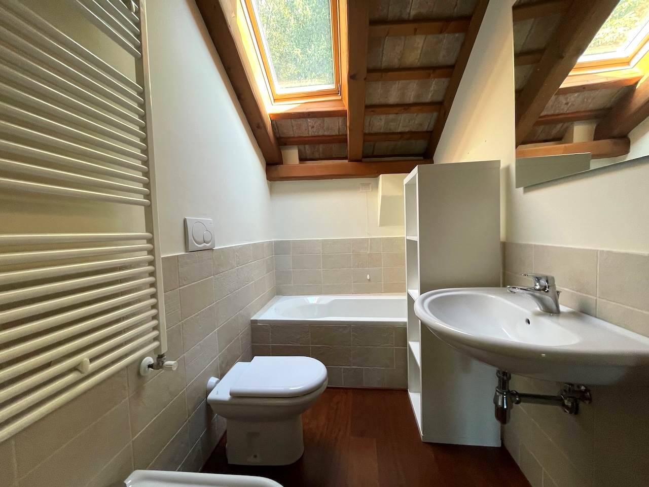 L’immobile è dotato di riscaldamento autonomo e aria condizionata, lavastoviglie, viene locato completamente arredato per un minimo di dodici mesi.