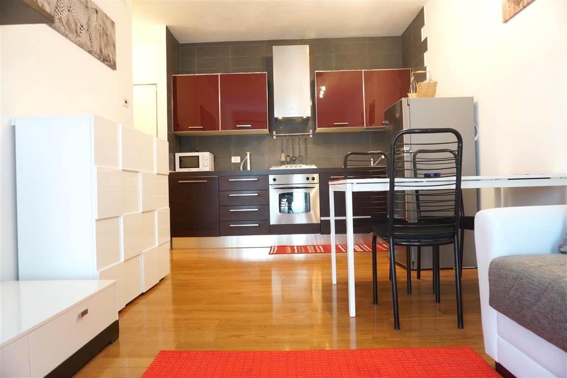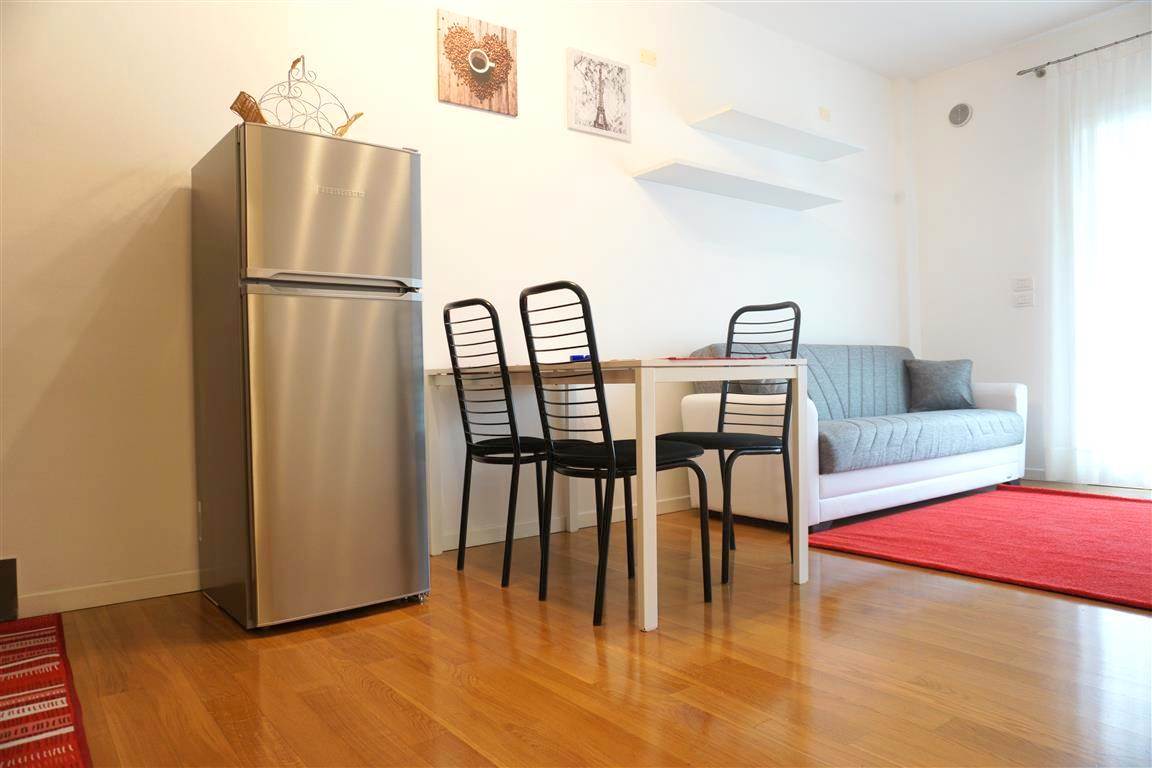 Rif. 2455 Jesolo Paese centralissimo, in elegante palazzina di recente costruzione, ampio miniappartamento completamente e finemente arredato e così composto: ingresso, soggiorno con zona cottura, camera matrimoniale, bagno, disimpegno completo di comoda armadiatura, due terrazzini, garage doppio.