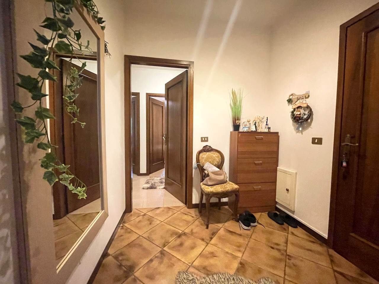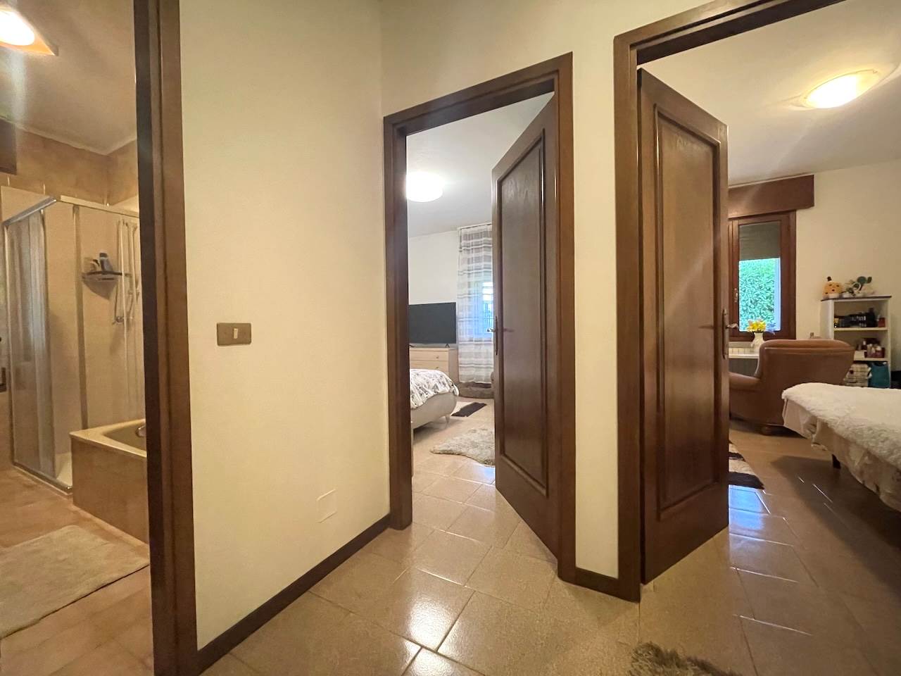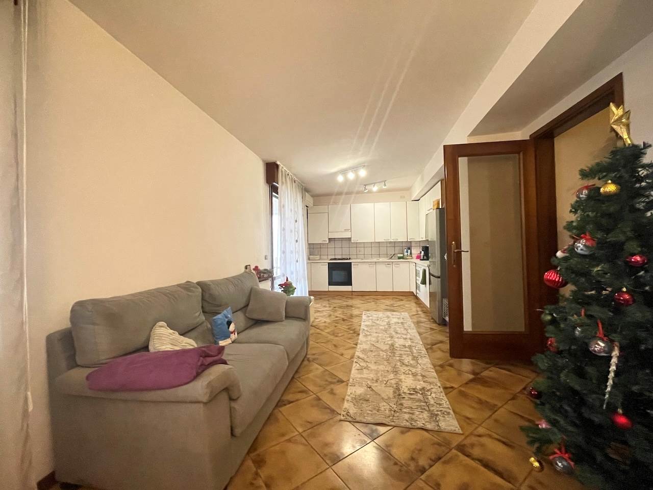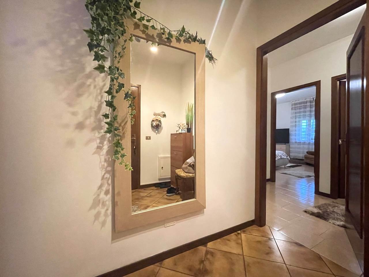 L’immobile è così composto: ingresso, ampio soggiorno con zona cucina, disimpegno che porta alla zona notte, due camere matrimoniali, stanza studio-guardaroba, bagno comodo con doccia, ripostiglio-lavanderia, esternamente troviamo un ampio portico abitabile di pertinenza dell’appartamento, i posti auto sono nello scoperto comune che è ampio, possibilità di un garage.
