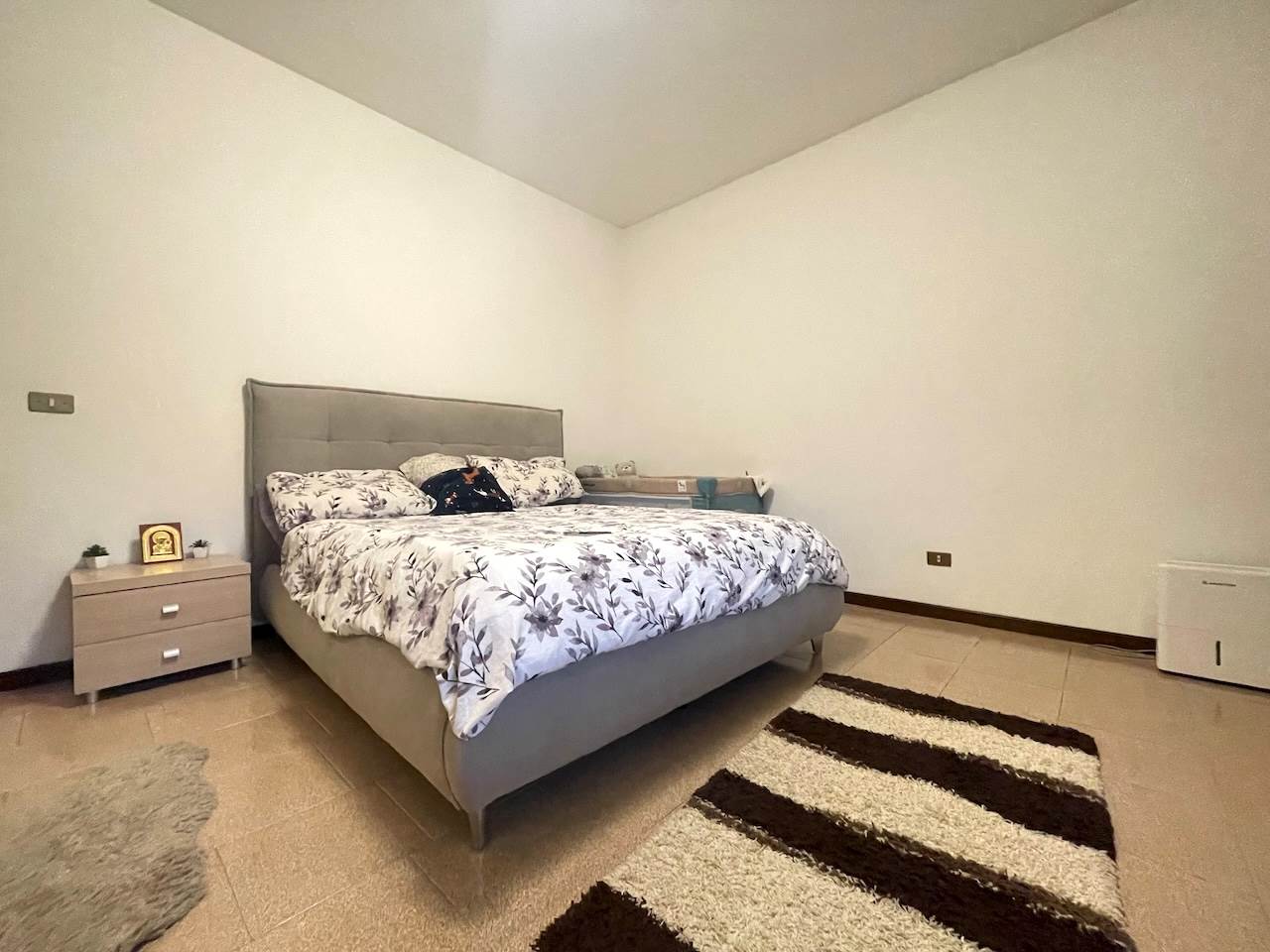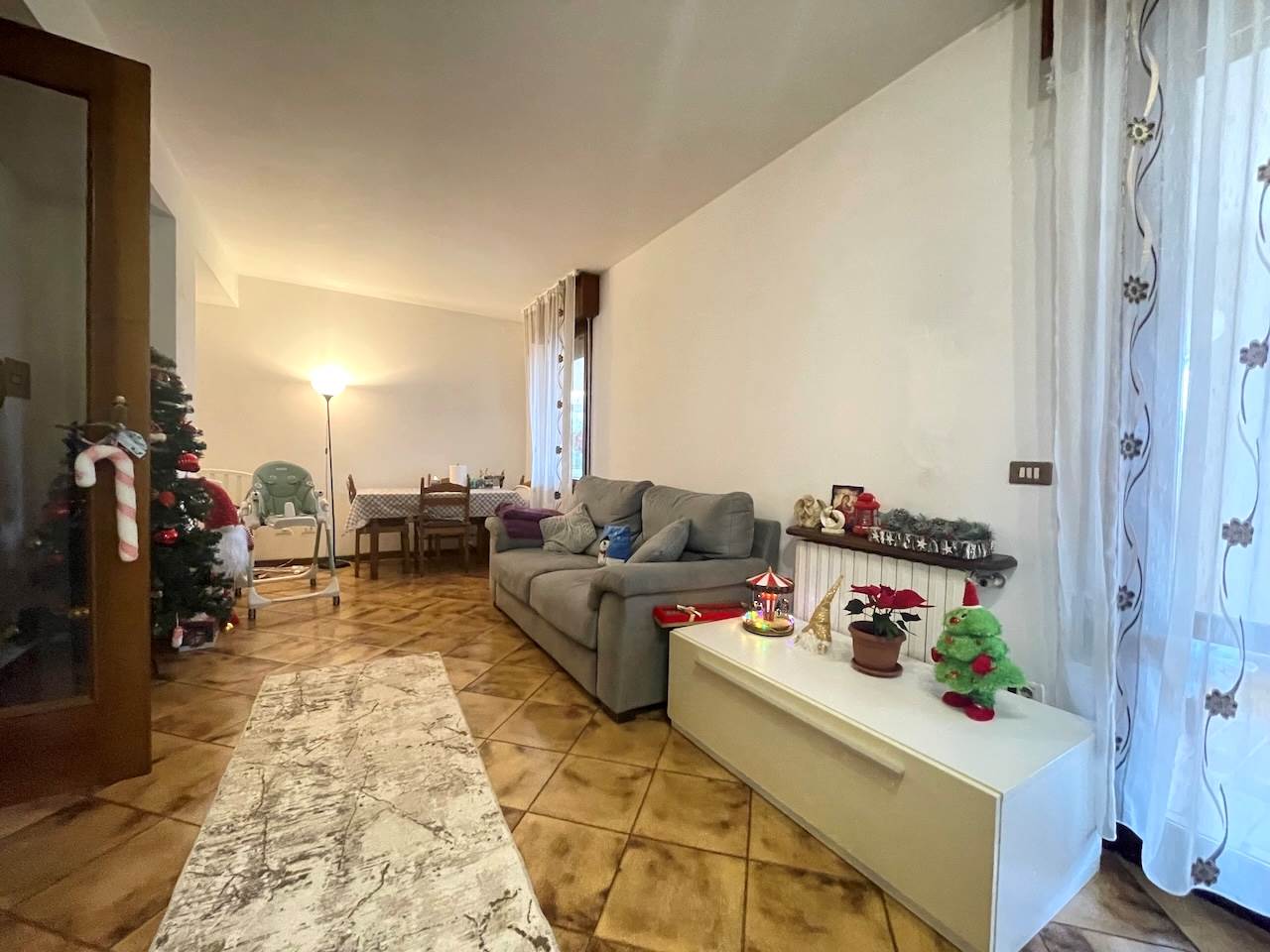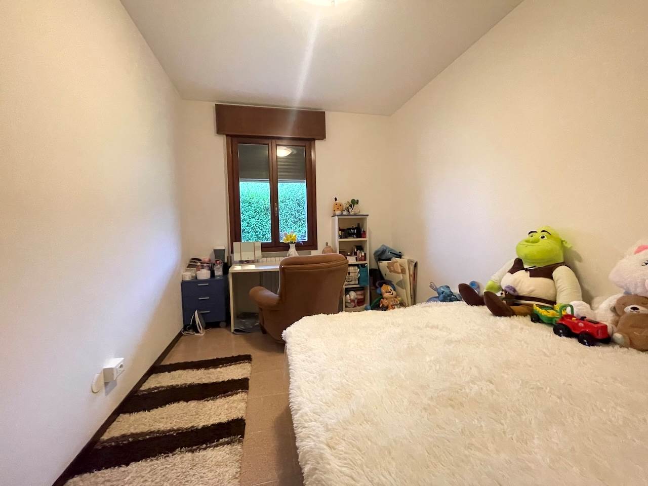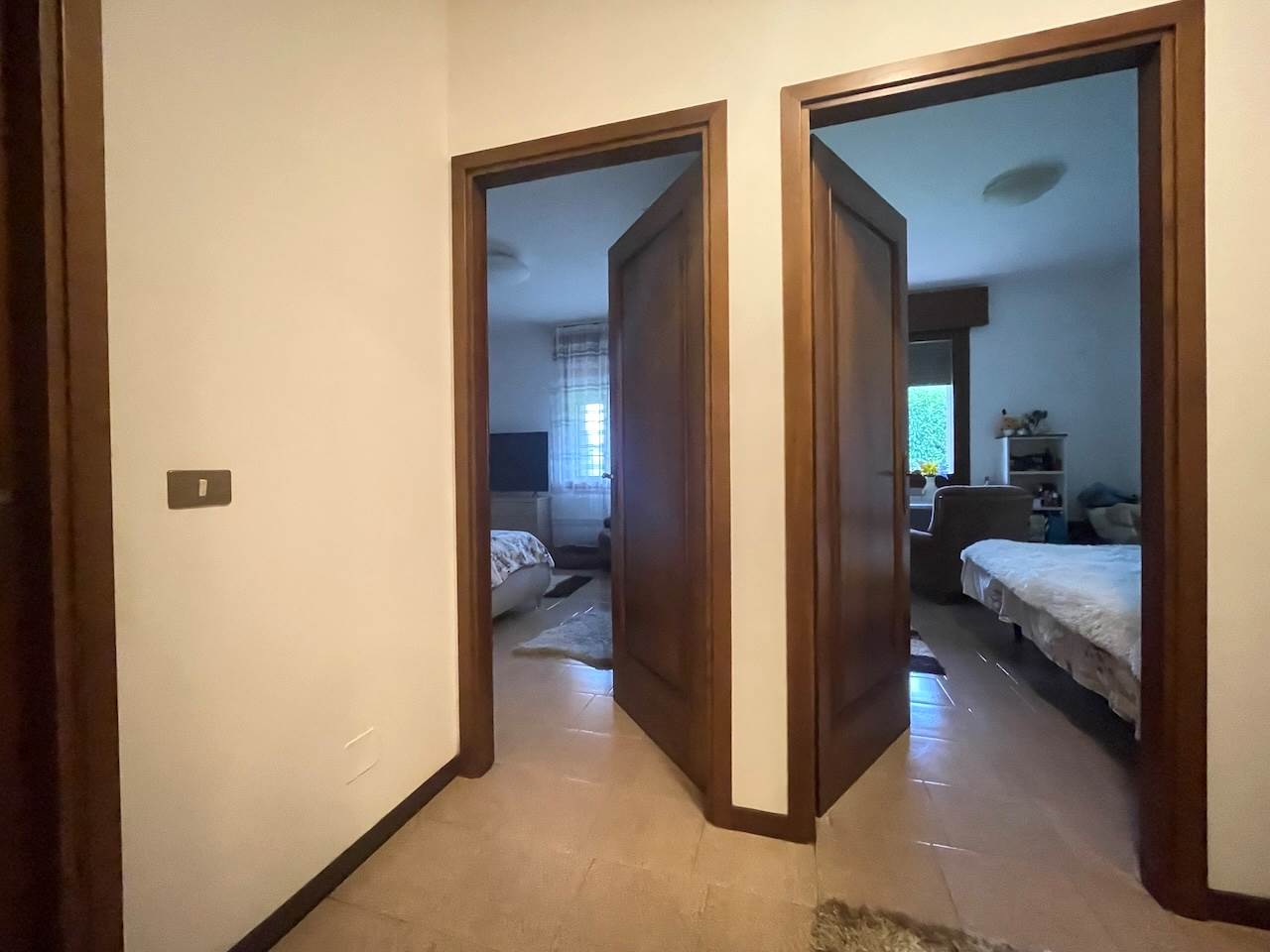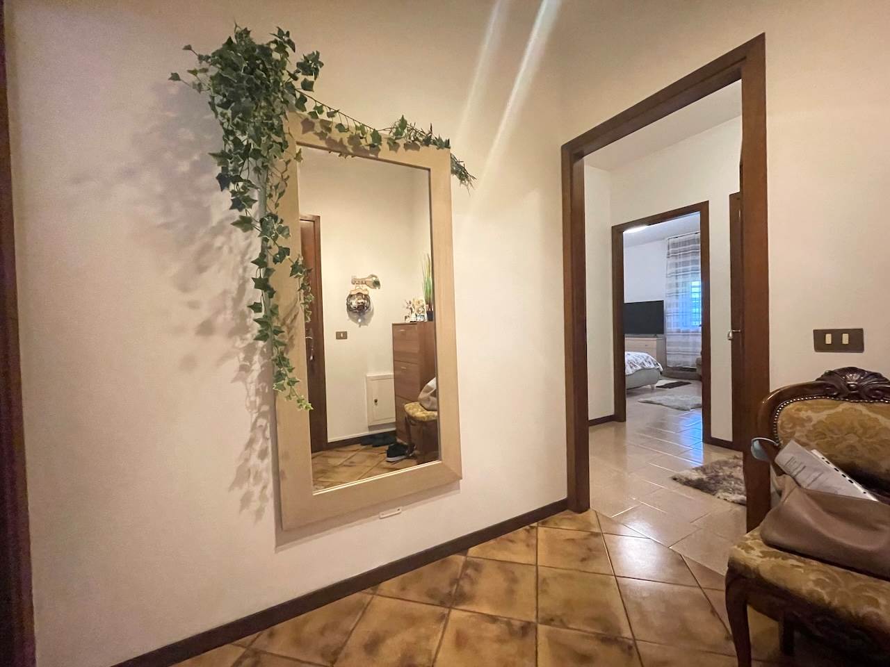 L’immobile è così composto: ingresso, ampio soggiorno con zona cucina, disimpegno che porta alla zona notte, due camere matrimoniali, stanza studio-guardaroba, bagno comodo con doccia, ripostiglio-lavanderia, esternamente troviamo un ampio portico abitabile di pertinenza dell’appartamento, i posti auto sono nello scoperto comune che è ampio, possibilità di un garage.