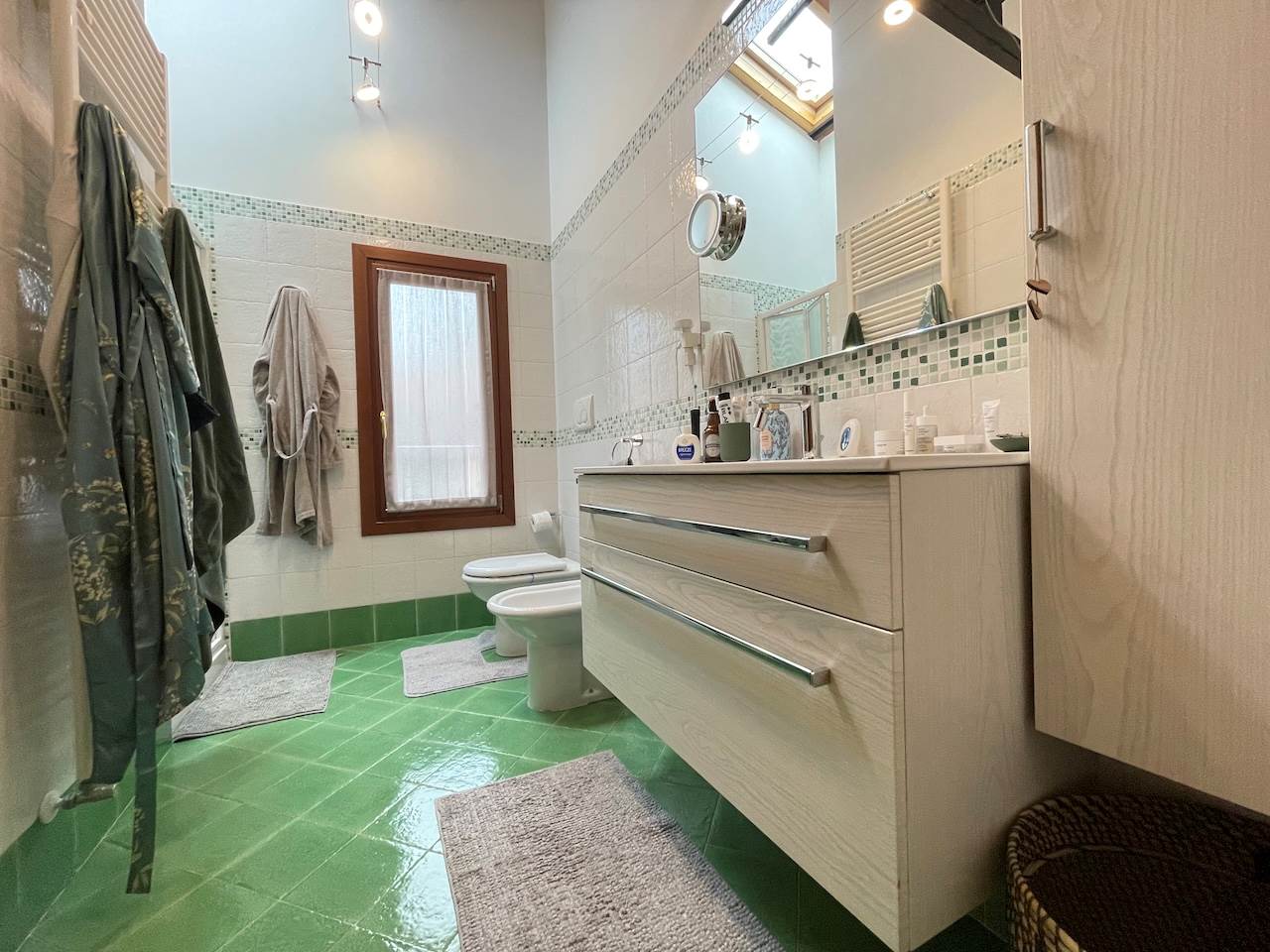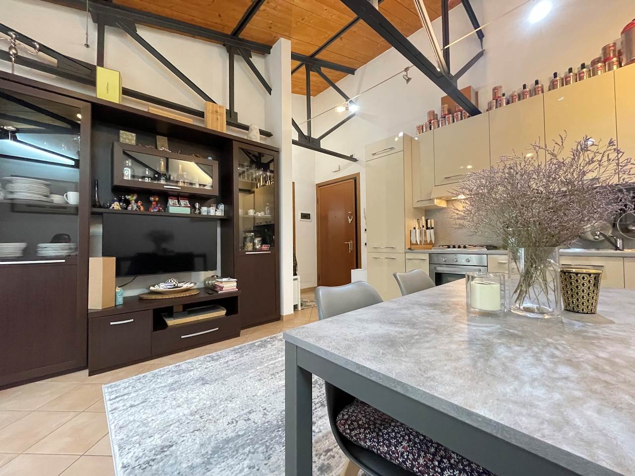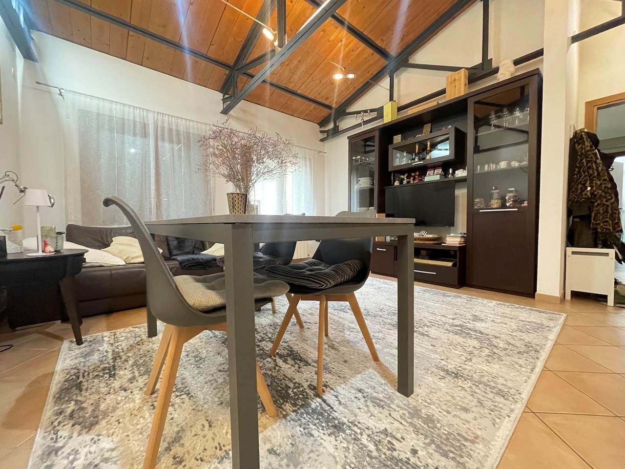Travatura a vista in tutta l’abitazione, riscaldamento autonomo, aria condizionata, posti auto recintati, non sono graditi animali.