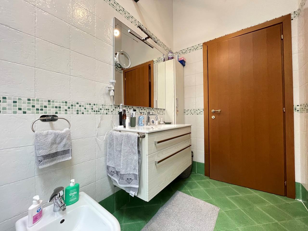 L’appartamento si trova al piano primo ed ultimo ed è così composto: ingresso, soggiorno con angolo cottura, camera matrimoniale, camera singola, bagno, due posti auto condominiali di pertinenza, ampio parco condominiale alberato a disposizione dei condomini.