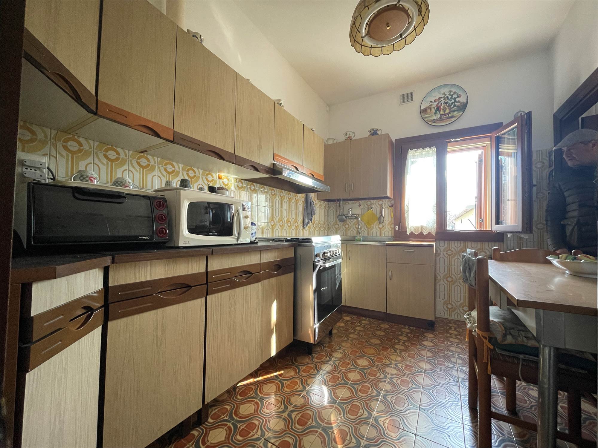 Rif. 2478 Jesolo, vicinanze scuole Dannunzio-ex Ristorante Ingordi, perfetta per il personale stagionale- può ospitare fino a sette/otto persone - porzioncina di casa a schiera disposta su due livelli e così composta: ingresso, soggiorno-sala pranzo, cucinotto, salottino/camera matrimoniale, al piano superiore due camere matrimoniali e una camera singola, un bagno (totale possibili camere quattro), ampio scoperto privato che può comodamente sette vetture, scooter e bici, ampio garage.