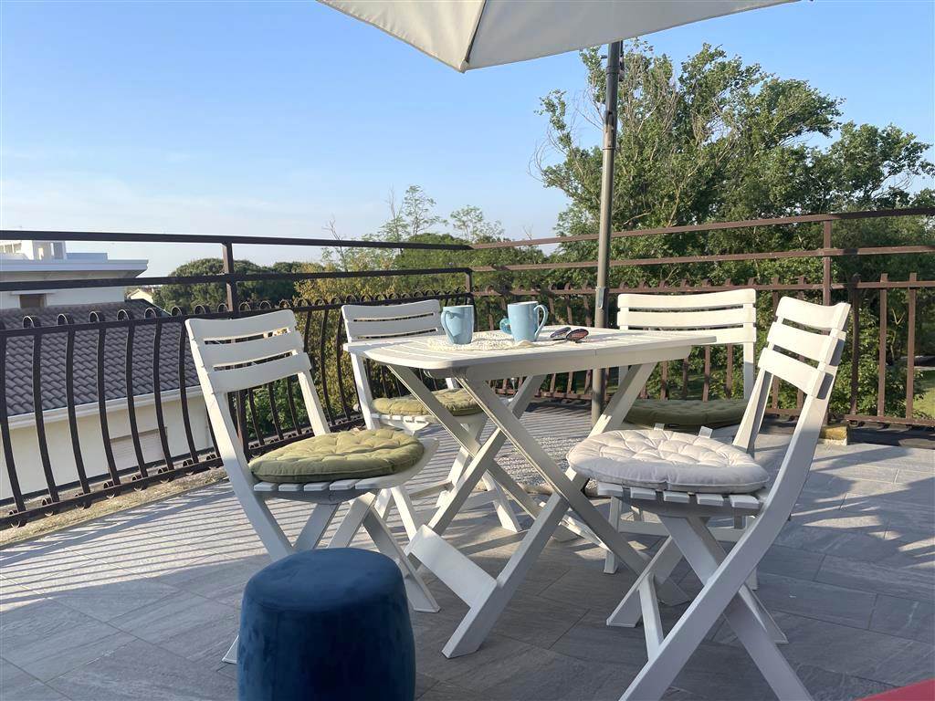 Jesolo in via Gaspare Gozzi n.16 (sopra alla palestra) in zona Piazza Manzoni, affianco all'hotel Almar, in piccola palazzina ad un passo dal mare, vi proponiamo una deliziosa mansarda, si trova al piano terzo (non c’è ascensore) ed è così composta: zona soggiorno spaziosa con divano letto matrimoniale e cucina a vista, camera matrimoniale mansardata con pouf/letto singolo, bagno spazioso con doccia e lavatrice, terrazzo mozzafiato di oltre mq.20 con un piccolo scorcio vista mare.